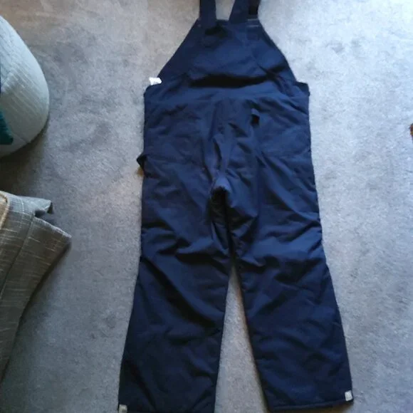 Carhartt fully lined quilted navy blue New without tags bibs. Adjustable straps with front elastic and clips to close.Size 42X32 full chest front pocket with velcro. Button close...