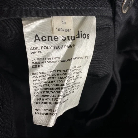 Acne Studios Adil Poly Tech Pant Trouser Men’s EU 48 Size 34 Waist Black