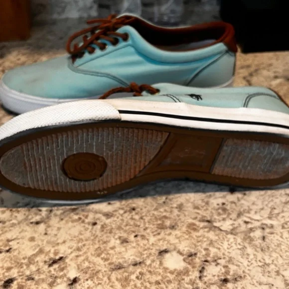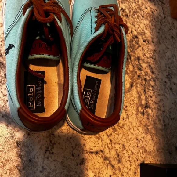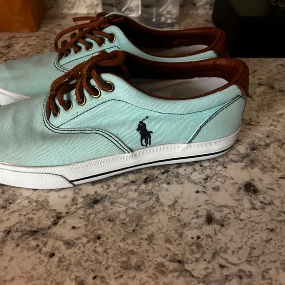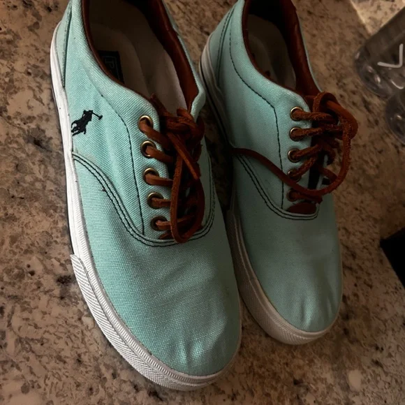 Ralph Lauren Polo Luxury Vaughn Leather SneakersTiffany blue cancas and brown leather with white laces Great used condition Shipped out today!