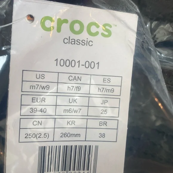 Crocs Mens‎ Classic 10001-001 Round Toe Slip On Black Clog Sandals Size M 7 W 9