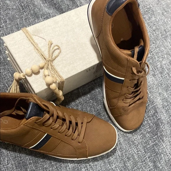 Step out in style with Aldo´s sleek tan sneakers. Perfect for any casual outing, these shoes offer both comfort and fashion.