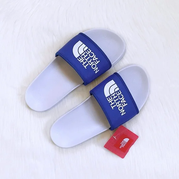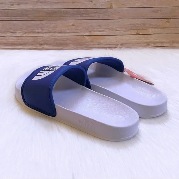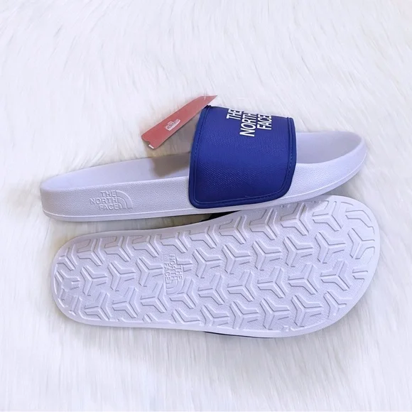 New With Tags- The North Face Men’s Basecamp Slide III In TNF White / TNF Blue With TPU Straps Made With Mesh Foam And EVA Foam Lightweight Midsoles And Outsoles.