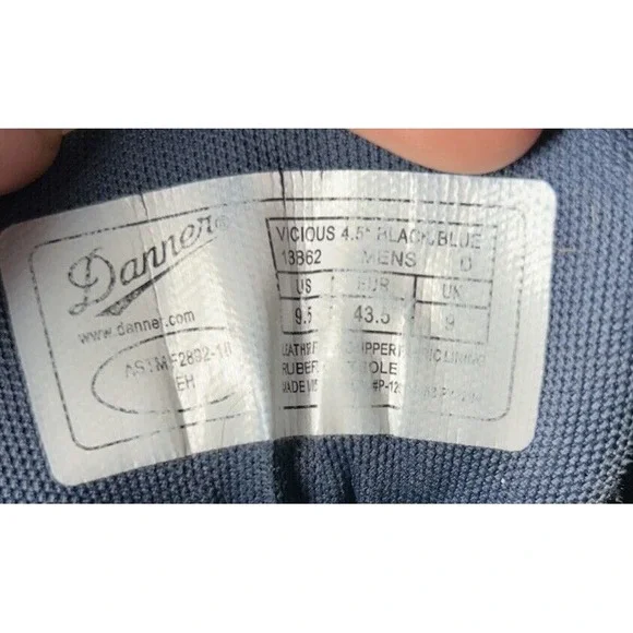 Danner Vicious Mens Black Blue Leather Safety Toe Work Boot Utility Shoes US 9.5