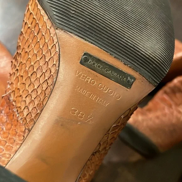 Awesome early 200’s Dolce & Gabbana Runway Boots. Snakeskin/ Python. In ver gently used condition. A few stains on one toe as shown in photo. Not really noti when wearing. These...