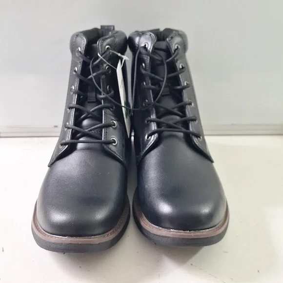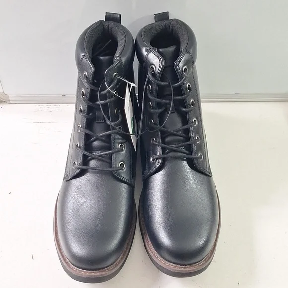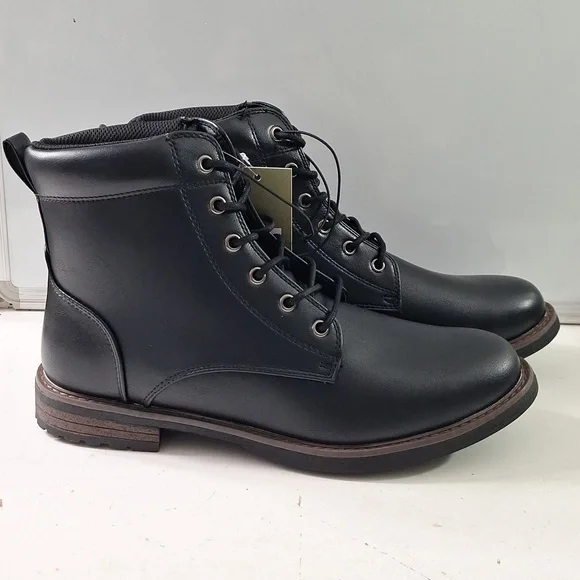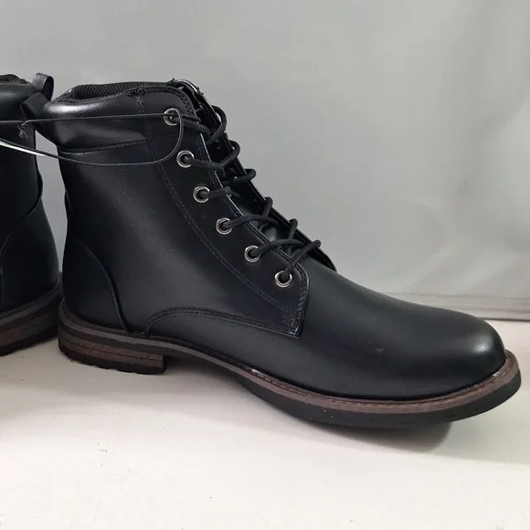 BRAND NEW!Goodfellow & CoMen´s Jeffrey Combat BootsColor: Black•Mid-calf combat boots•Breathable upper•Features lace-up closure•Closed-toe designGive your casual outfit a stylish finishing touch with these Jeffrey Combat Boots from Goodfellow & Co. The medium-width combat boots are designed with a lace-up closure to give you a comfy fit, along with a pull-tab at the back for ease of wear. These mid-calf combat boots boast a breathable upper and padded collar for a comfy feel that´s great for everything from running errands to enjoying a walk in the park.*Possible slight scuffs due to shipping/storageSizes:7 - 1969833592878 - 1969833592019 - 19698335919510 - 19698335923211 - 19698335935511.5 - 19698335926312 - 196983359331