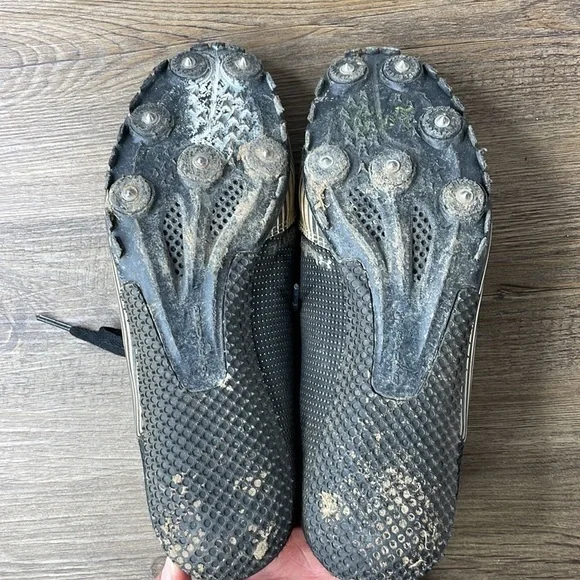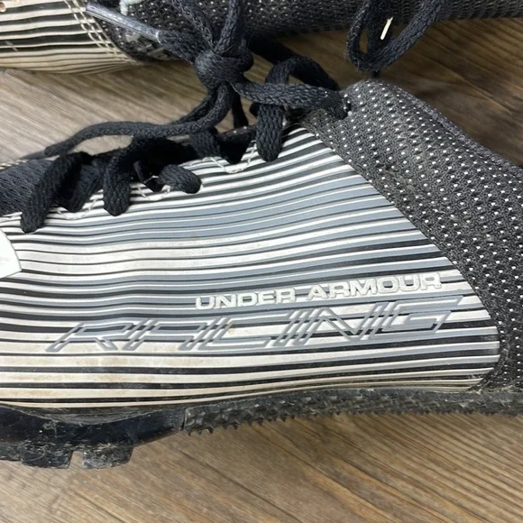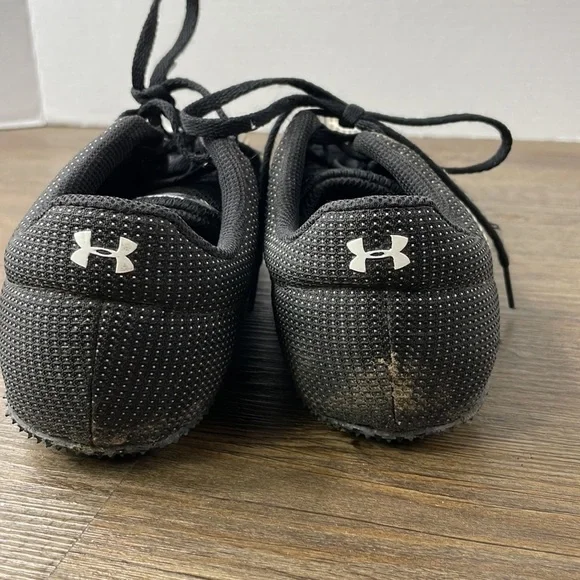 Under Armour Kick Distance Men Track Shoes Spikes 1273939 100, Black White, Size 8.5. In great used conditon, a little dirty but could easily be cleaned up. Stay ahead of the game...