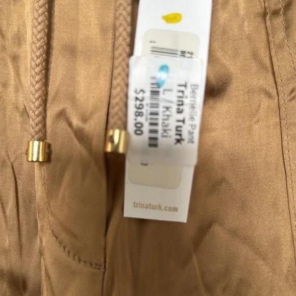 Womens trina turk Brown/khaki satin jogger Pants size large NWT