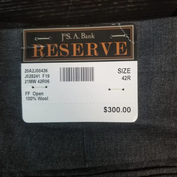 New Jos. A. Bank Reserve Charcoal Wool Pants Size 42R