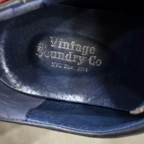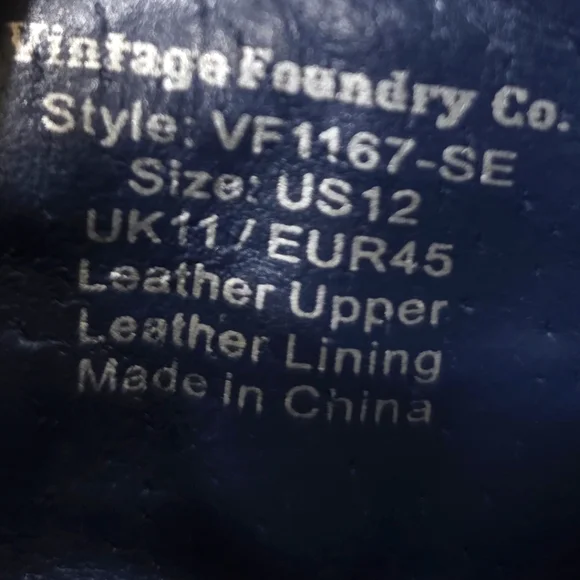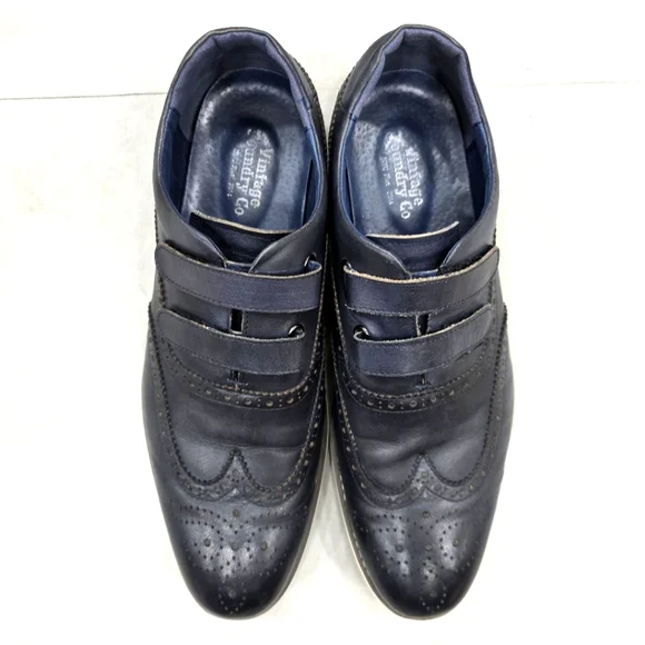 Vintage Foundry Co wing tip shoes men´s size 12 dark navy blue leatherleather lined hook and loop straps Western Pre-owned in good condition There are some creases and some scuffs from normal wear Please see photos