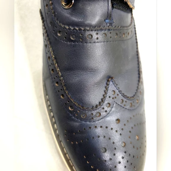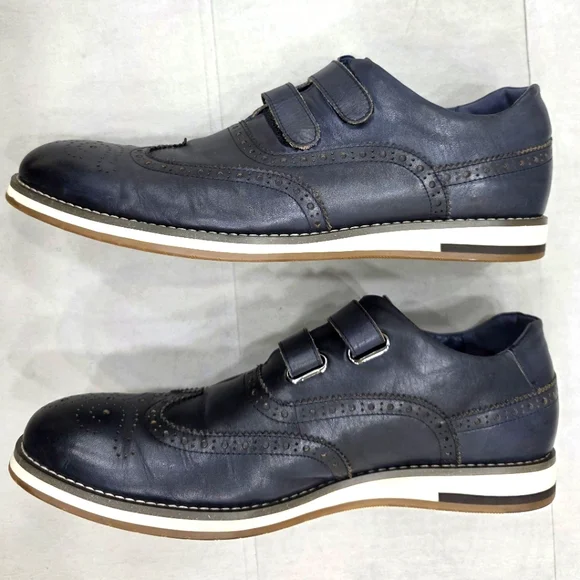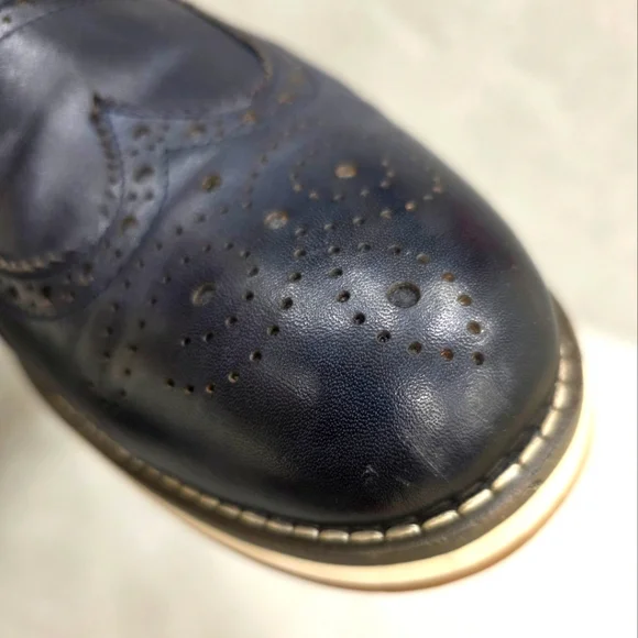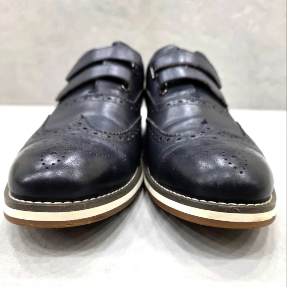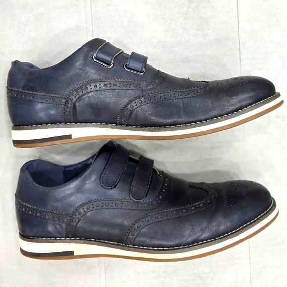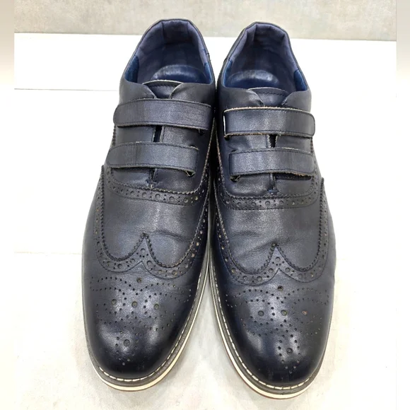 Vintage Foundry Co wing tip shoes men´s size 12 dark navy blue leatherleather lined hook and loop straps Western Pre-owned in good condition There are some creases and some...