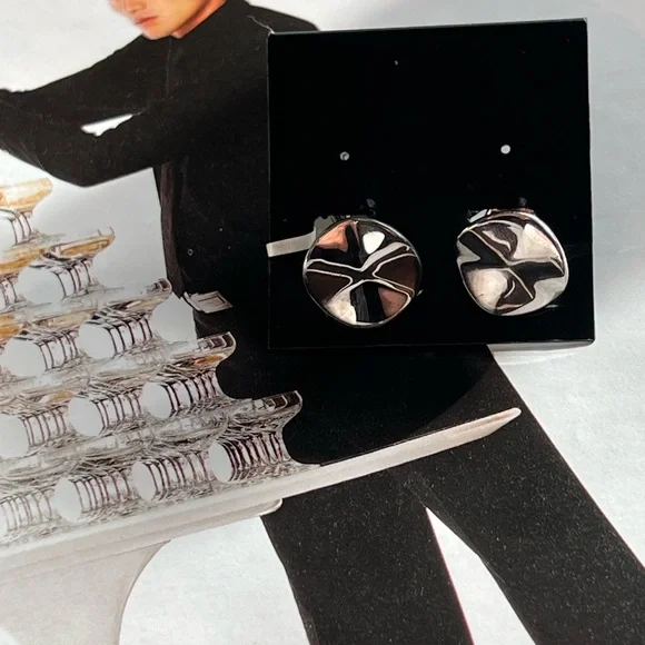IPPOLITA Stering Silver Mens Cufflinks Wavy Disc Disk .925