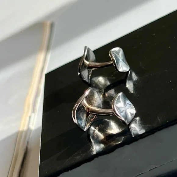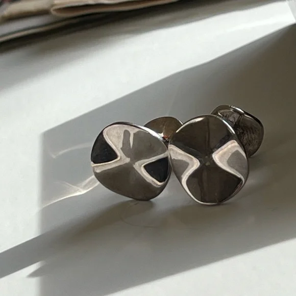 IPPOLITA Stering Silver Mens Cufflinks Wavy Disc Disk .925 • retail $325 • cuff links are in good condition, need a little polishing •