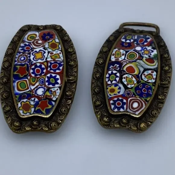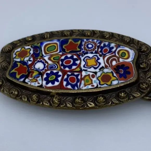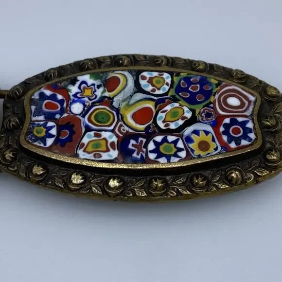 Antique Victorian Millefiori Glass Brass belt buckle