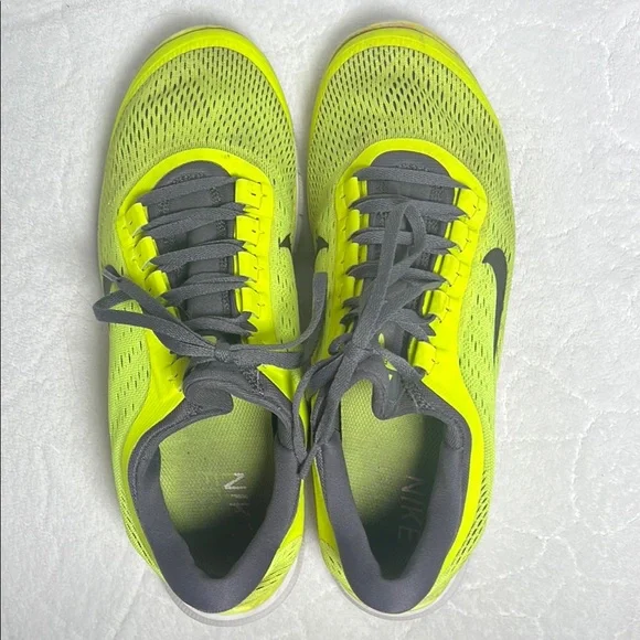 Dynamic Nike sneakers in neon yellow with sleek black details. Ideal for sports and casual wear.