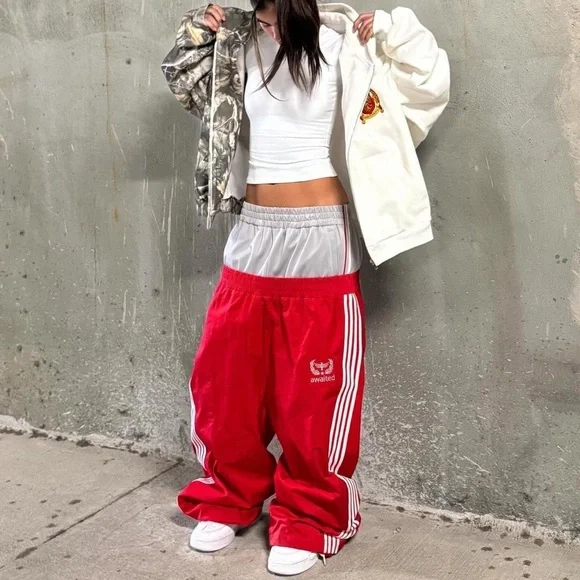 Stylish and comfortable, these kids´ track pants are perfect for active days. Featuring a vibrant red color with classic white stripes, they offer both style and functionality. y2k