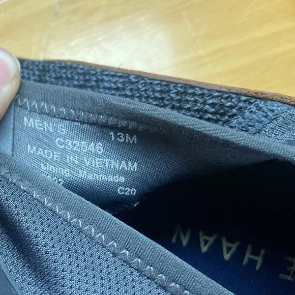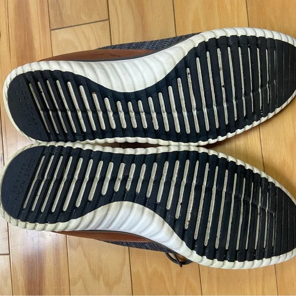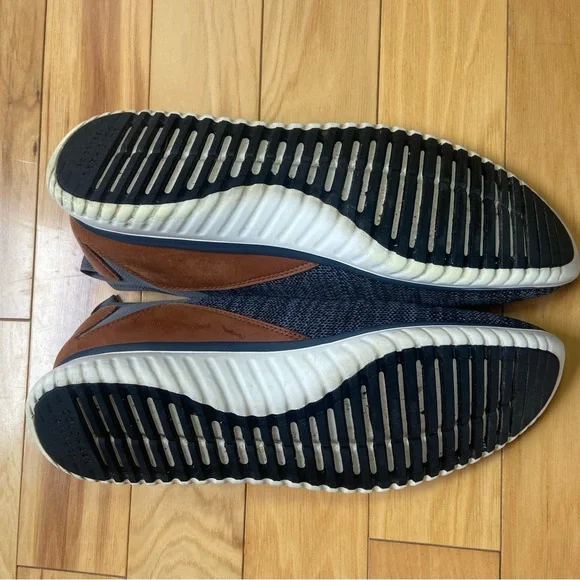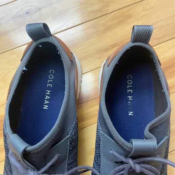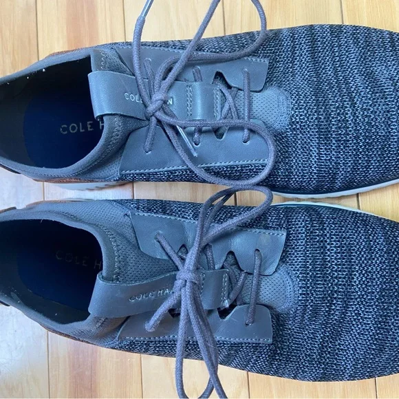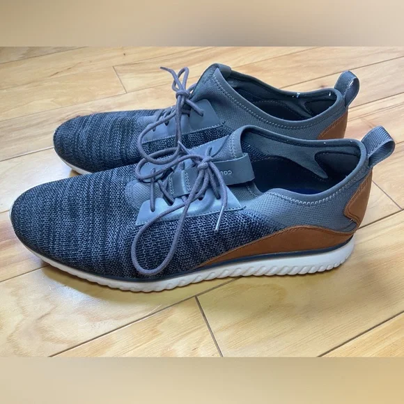 Mens COLE HAAN Grandsport OS Knit Leather Sneaker 13M Gray Crossover Dress ShoeVery good pre-owned condition with some slight stains on the white outsoles and a small flaw on the toe of R shoe. Knit and laces in great conditionMen´s Cole Haan Grandsport.OS Knit and Leather Crossover Sneaker.Size: 13MColor: Gray knit and laces with brown leather details on back of shoe and white rubber outsoles.Comes from a smoke free environment.