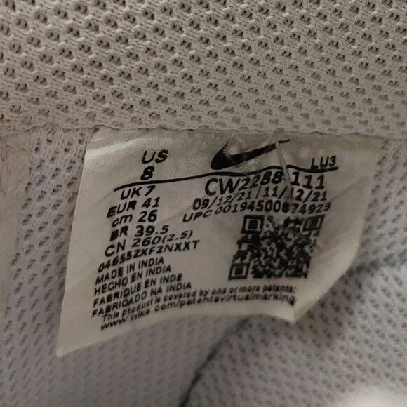 NikeAir Force 1 ´07 Sneakers Mens 8Leather upperPerforations on the toeFoam midsoleRubber soleWhite/White/WhiteStyle CW2288-111Mark on back left heel area
