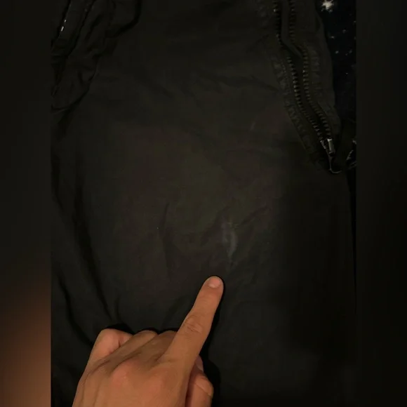 Small rip on the back of the pants shown on the picores Small stain on the pants shown on the pictureThe made in italy tag one size is rioped