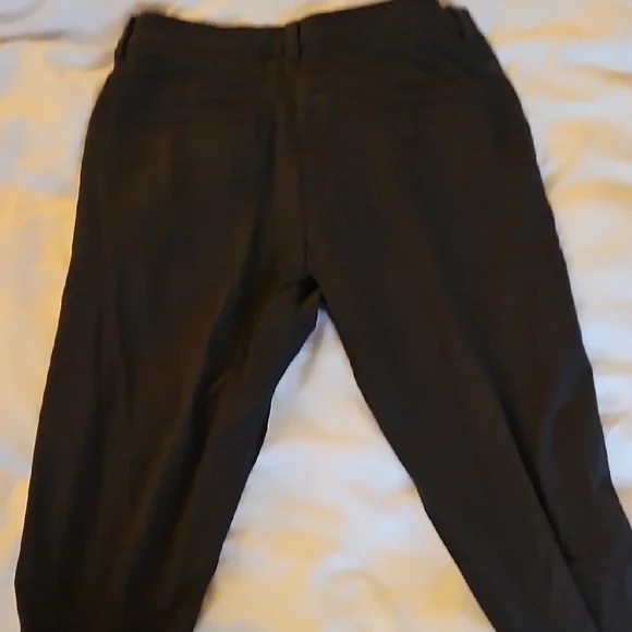 stretchy light black/dark Grey lulemon dress, casual pants. inseam from bottom of crotch to foot is 31 inches