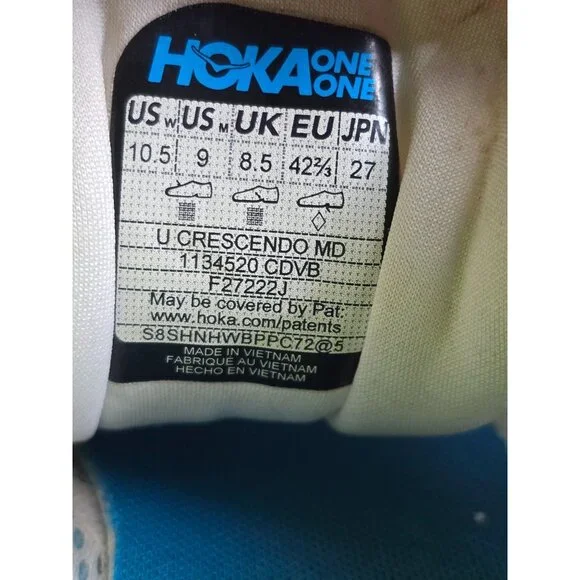 Hoka One One Crescendo MD Track Spikes Mens Size 9 Womens Size 10.5 Diva Blue. IN good pre-owned condition. Flaws- some wear on edges of front an back soles- missing spikes- some...