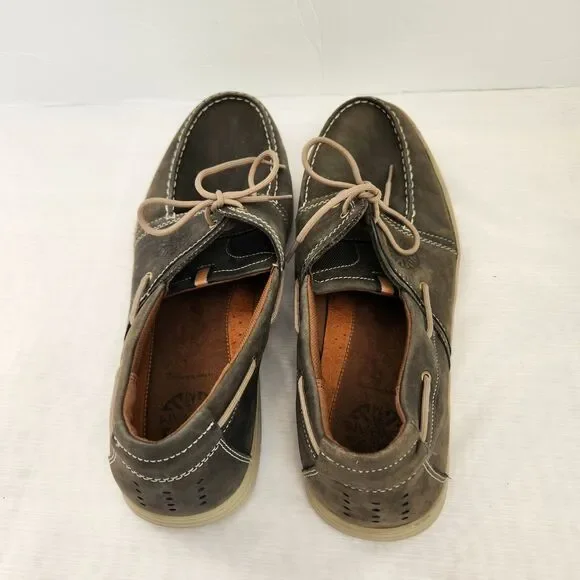 Dunham By New Balance Boat Shoes Men´s 15 D Captain Leather Loafer Gray DAH01NV.- Pre-Owned in Very Good Condition