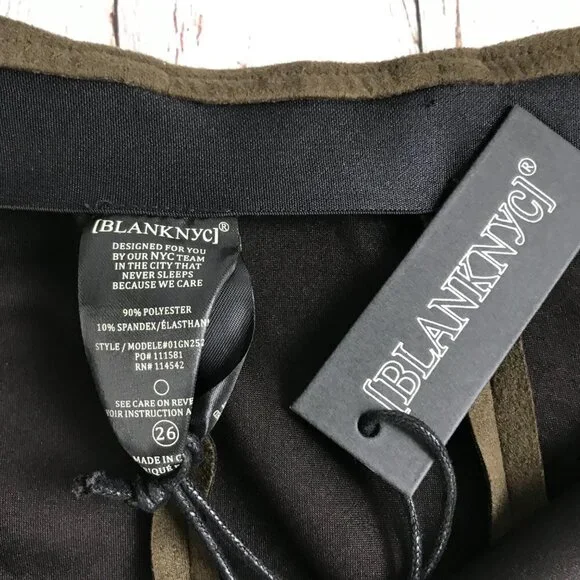 BLANKNYC brown faux suede leggingsSize 26Zippered backElastic waistHigh RiseSkinny ankleItem is New with tags but has been "Altered or Refinished" by Nordstrom (Unable to tell where)Approximate measurements (lying flat) Inseam 28"Waist 12"Rise 10.5Please see photos for fabric content and care instructionsBundle & save or comment below to request price drops & discounted shipping during Closet Clear Out on Fridays and Sundays!Feel free to message me if you have any questions - Offers welcomeThanks for stopping by!Item is from a smoke-free, pet friendly home