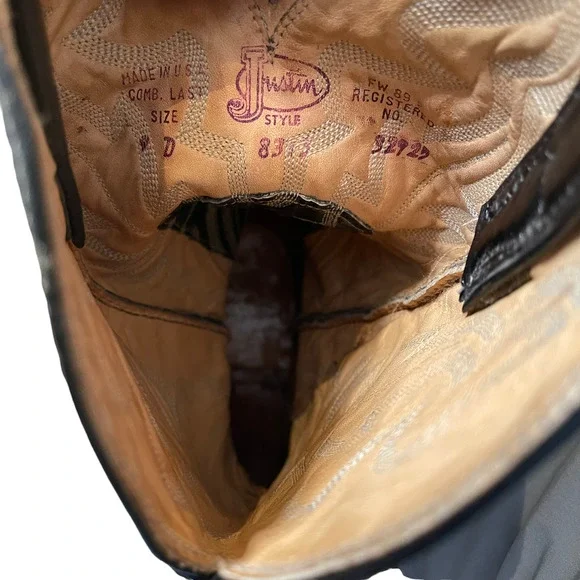 Uppers show some wear from use such as; dirt, scuffs, marks, rubs, etc.Soles show wear but still have life left.Please see pictures.Brand- JustinMaterial- Lizard LeatherSize-...