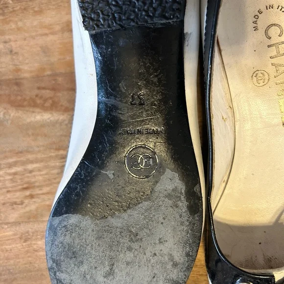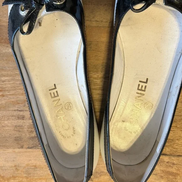 black patent and white leather spectator flats.Size 37 (6.5).