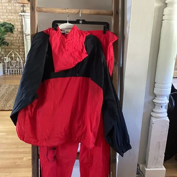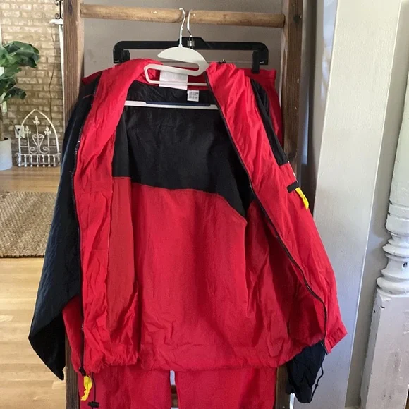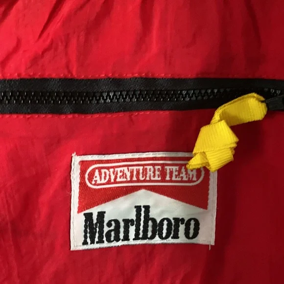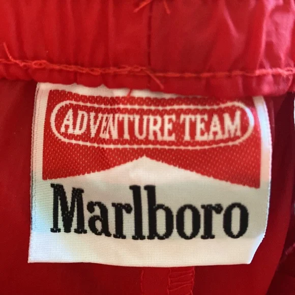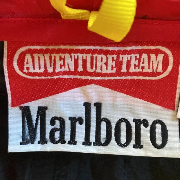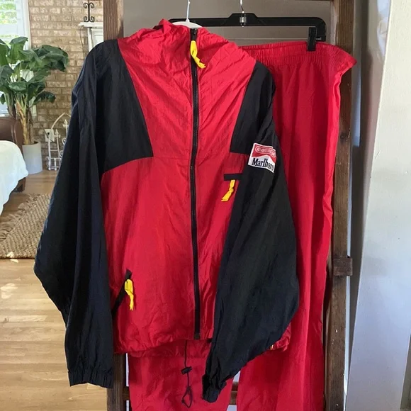MARLBORO RED BLACK Vintage 1990s Tracksuit Windbreaker PANTS AND JACKET LARGEjacket:pti to pit = 26 inchespit to end of sleeve = 21 inchesshoulder to hem = 25 inchespants waist = 17.5 inches not stretchedinseam = 32.5 inchesthanks for stopping by my closet!