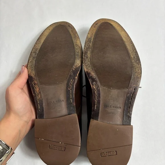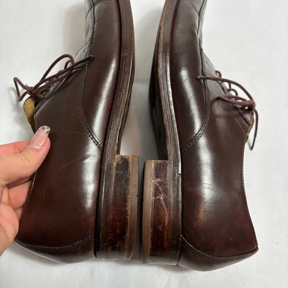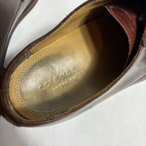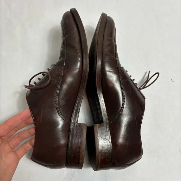 Cole haan brown leather lace up oxford dress shoes. In excellent condition. Leather looks fantastic. Flaws are pictured. Lace up shoe. Size 10 1/2