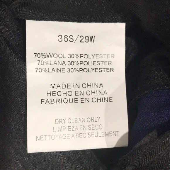 New ⬆️see picturesStyle# VA001SV520970% wool, 30% polyester- Zip fly with hook-and-bar closure- Side slash pockets- Back besom pockets- Approx. 10" rise, 34.5" inseam (size 29W)