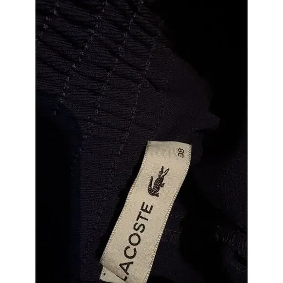 These Lacoste Relaxed Fit cotton jogger track pants in Navy Blue are designed for men in size 38in. They feature an elastic waist with a drawstring for a comfortable fit, along...