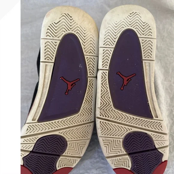 A pair of Jordan basketball sneakers featuring a high-top design, these shoes offer both style and performance. The sneakers showcase a sleek combination of black and gray, accented with vibrant red and purple details. The iconic Jordan logo is prominently displayed, adding to the shoe´s appeal. These sneakers are designed for comfort and support on the court, making them a great choice for basketball enthusiasts.Please note that these are not in the best condition as shown in the pictures.Color: BlackDepartment: MenUK Shoe Size: 9Model: Jordan High TopStyle: SneakerShoe Shaft Style: High TopRelease Year: 2012Upper Material: SuedeEU Shoe Size: 44Type: AthleticKeywords: Jordan, basketball shoes, sneakers, high top, black, red, purple, mens, size 10, athletic shoes, streetwear, retro, performance shoesThank you for your interest in this item!