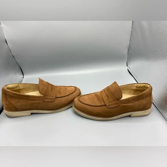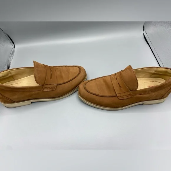Samuel Hubbard Men´s 9.5 Tailored Traveler Penny Loafer Brown Nubuck LeatherSoft, premium dyed-through leathers, no harmful chemicals, and water-repellent treatmentEVA sole with excellent abrasion resistance, flexibility, good shock absorption in the heel, and comfortable bounce under the ball of the footSkin-friendly, soft, moisture-absorbing leather liningTriple-density removal insole, supportive, made with sustainable corkDesigned in Mill Valley, CA. Handcrafted in Portugal.