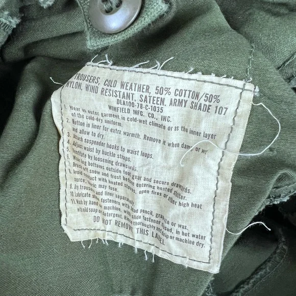 Vietnam military trousers cold weather green 107 8415-00-782-2951