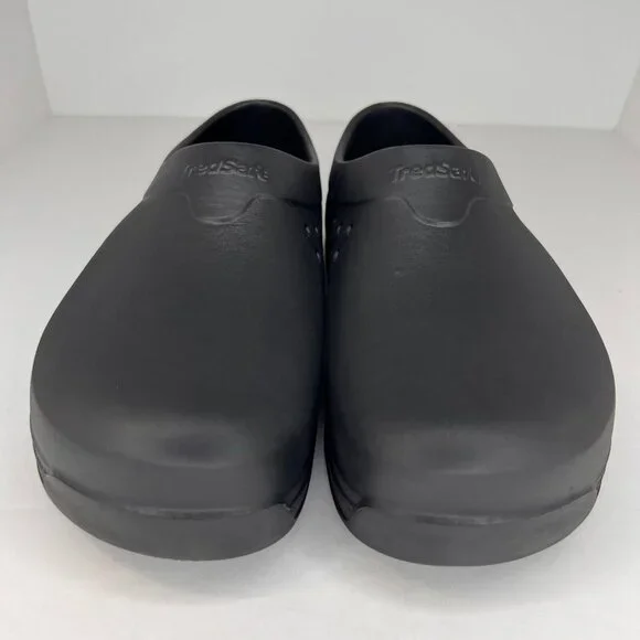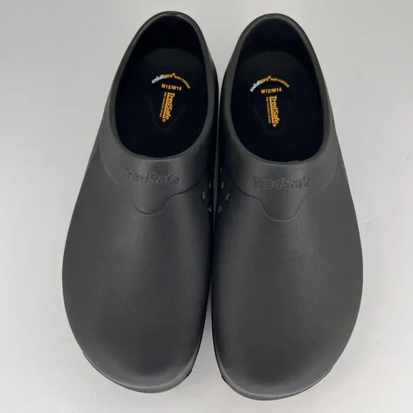 Introducing the TredSafe Unisex Black Rubber Loafer Shoes, designed for both comfort and functionality. These slip-on shoes feature a solid black rubber construction, making them durable and easy to clean. The round toe design ensures ample space for your toes, promoting a natural and comfortable fit. Available in sizes 12M and 14W, these loafers cater to a variety of foot shapes and sizes. Whether you´re on your feet all day or simply need a reliable pair of shoes for everyday wear, the TredSafe loafers provide the perfect blend of support and style. Ideal for both men and women, these shoes are a versatile addition to any wardrobe.100% CUSTOMER SATISFACTION IS OUR GOAL!Our items are always carefully examined for condition, measured if necessary, and photographed in a climate controlled and smoke-free environment. We make every attempt to accurately describe and clearly picture the items we have for sale. Please, ALWAYS view all of the photos. We value your business and our goal is your complete satisfaction.FAST SHIPPINGAll items are packaged with care and shipped out the same or next business day via USPS, FEDEX, or UPS with tracking numbers so you are always informed.