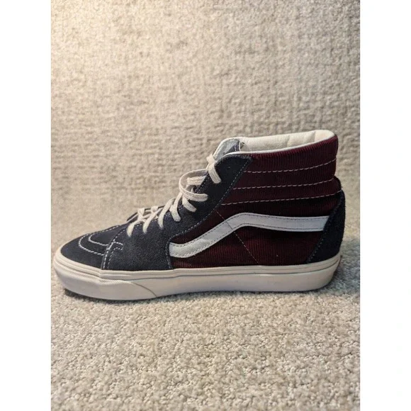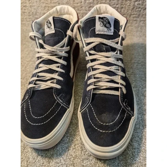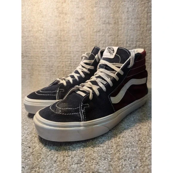 Vans Shoes Mens 9 SK8 Hi Skateboarding Sneaker Burgundy Blue White