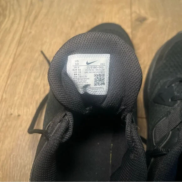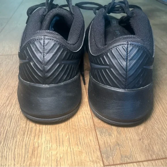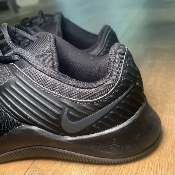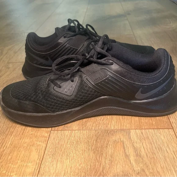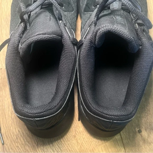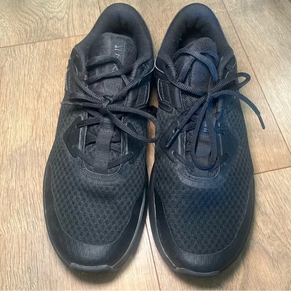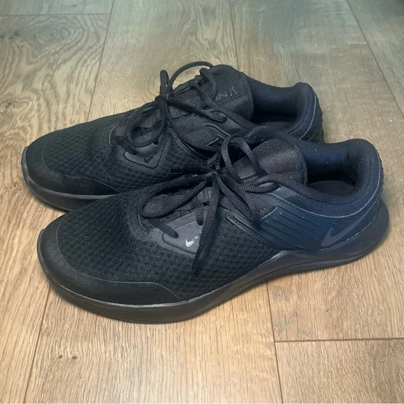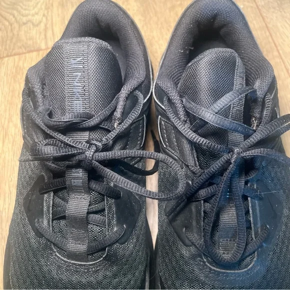 All-black Nike sneakers with mesh design. Ideal for running and everyday use.