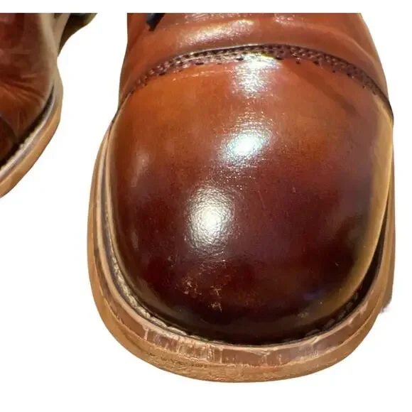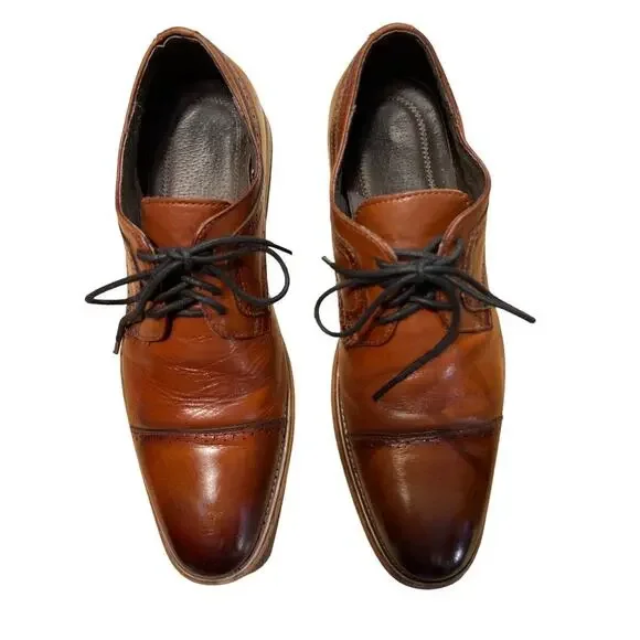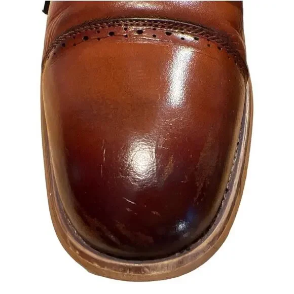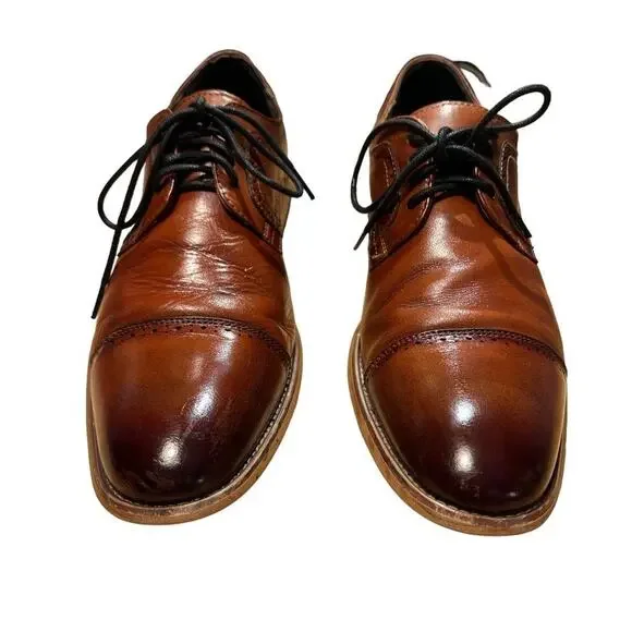 Stacy Adams Maddox Leather Lace Up Dress Shoes Oxfords Size 10 Cognac - Dark Brown to Medium BrownBurnished Cap ToeSome toe and heel wear - see picsThe laces have been...