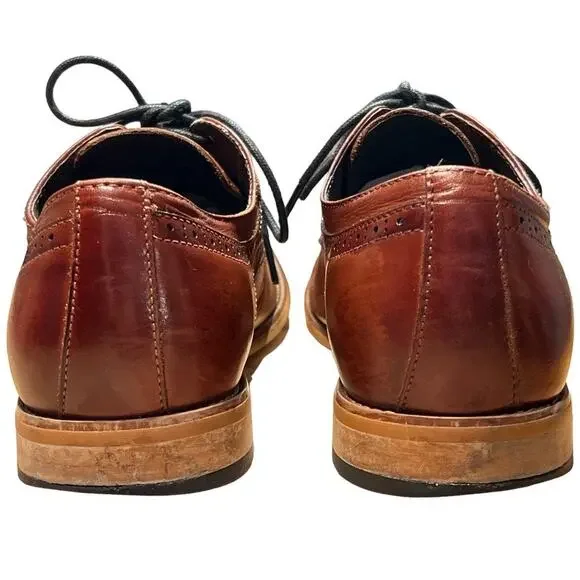 Stacy Adams Maddox Leather Lace Up Dress Shoes Oxfords Size 10 Cognac Burnished