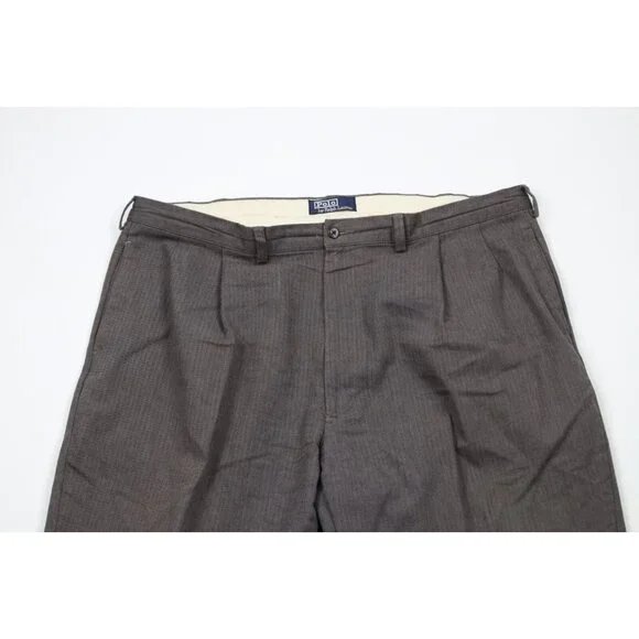 Vtg 90s Ralph Lauren Mens 42x30 Faded Pleated Wide Leg Herringbone Chino Pants