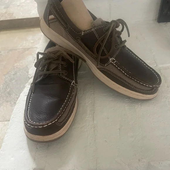 New condition.Padded comfort insole with arch support.Leather/textile upperLeather shoes stringsRubber soleLightweight and durable: These slip-on canvas shoes have a rubber sole and are ready to be sailed & danced in all the way from the cape to the cookout, the lake to the luau, and the harbor to the barWear it, love it: Designed for daily wear, these boat shoes are perfect for weekends on the water and weekdays at work; when Monday comes, it’ll be alright
