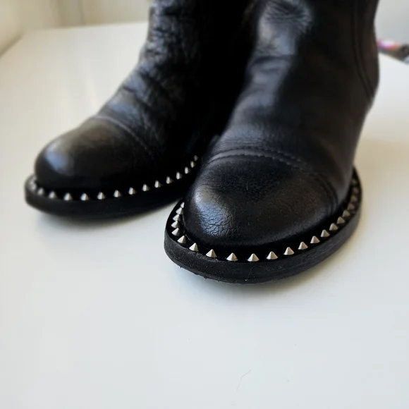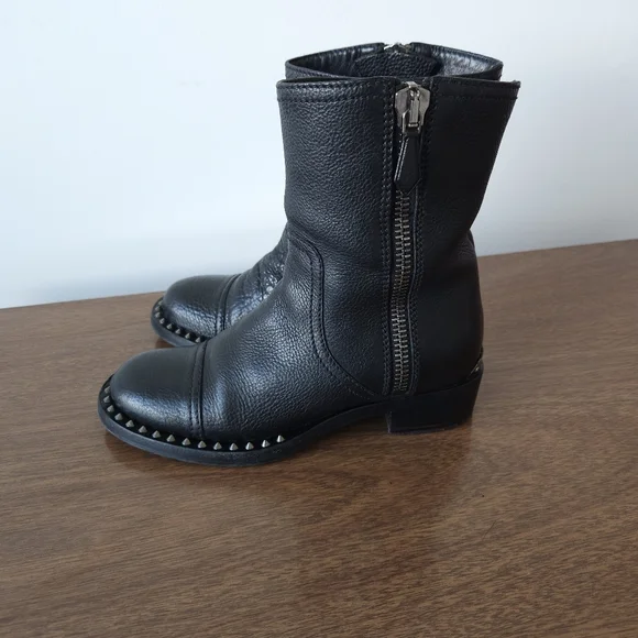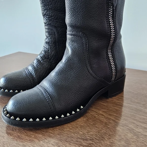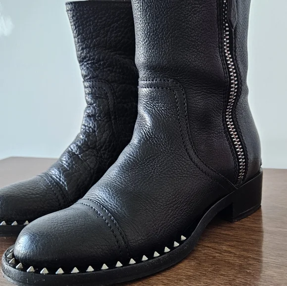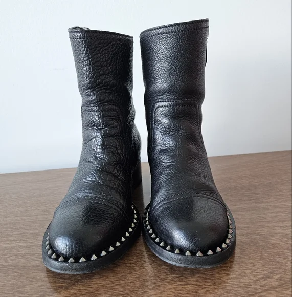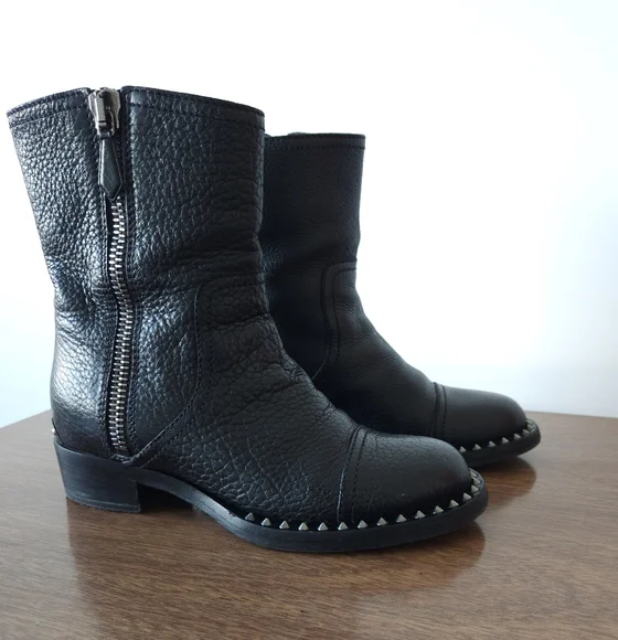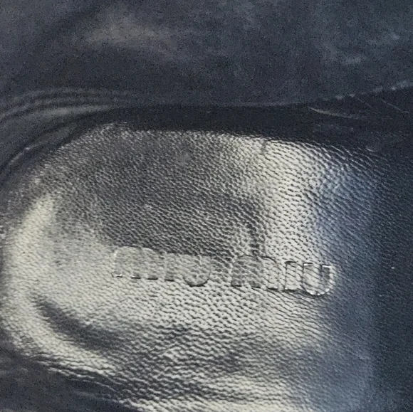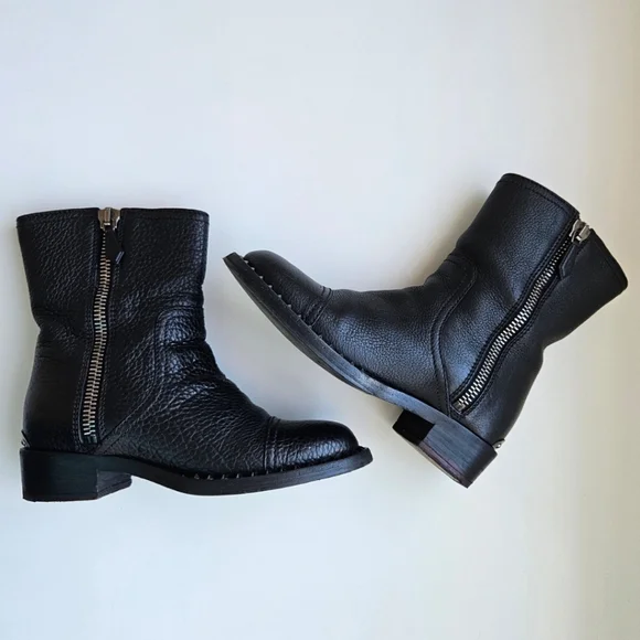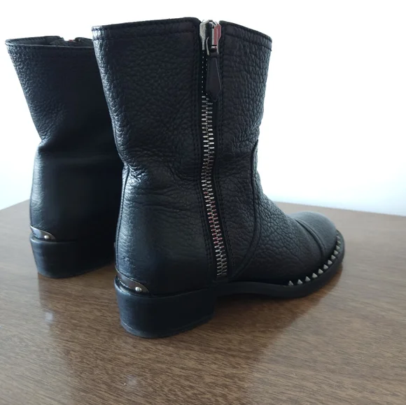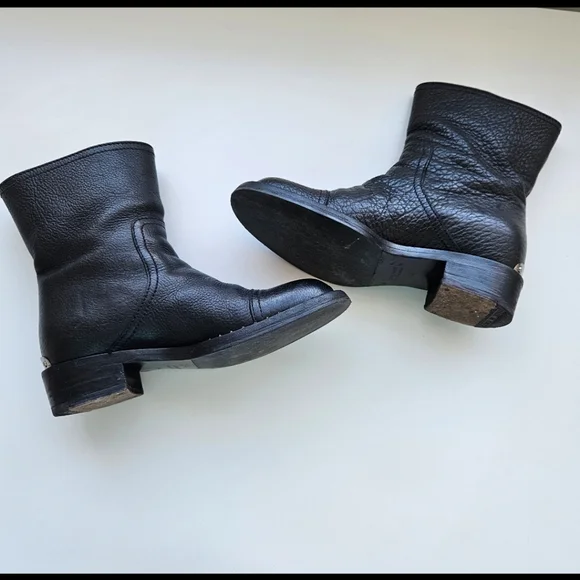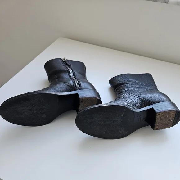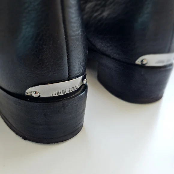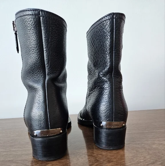 MUI MIU Black Pebbled Leather Silver Zipper Moto Boots