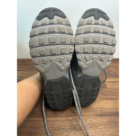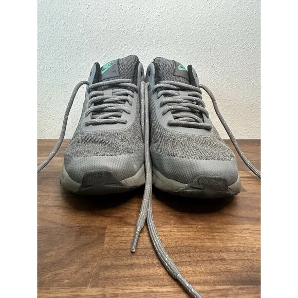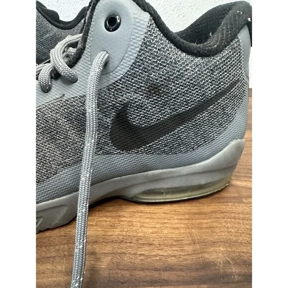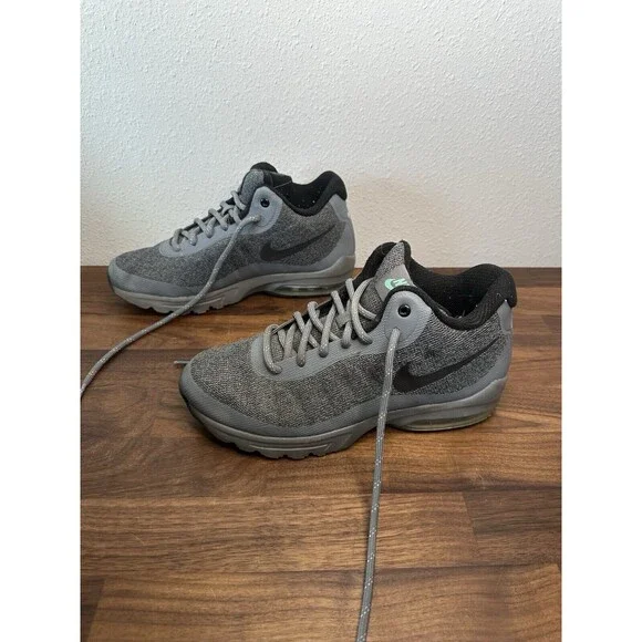 The Nike Air Max Invigor Mid in Grey/Black is a men´s sneaker size 8 with a lace-up closure and low-top shaft style. Featuring a synthetic upper and rubber outsole, this athletic shoe is designed for cross-training, CrossFit, and running. The shoe provides cushioning, comfort, and breathability with a foam insole and fabric lining, making it suitable for activewear, casual, or workwear occasions in the summer, fall, or spring seasons. The Nike Air Max Invigor model is part of the Nike Air Max product line and showcases a solid gray color scheme.