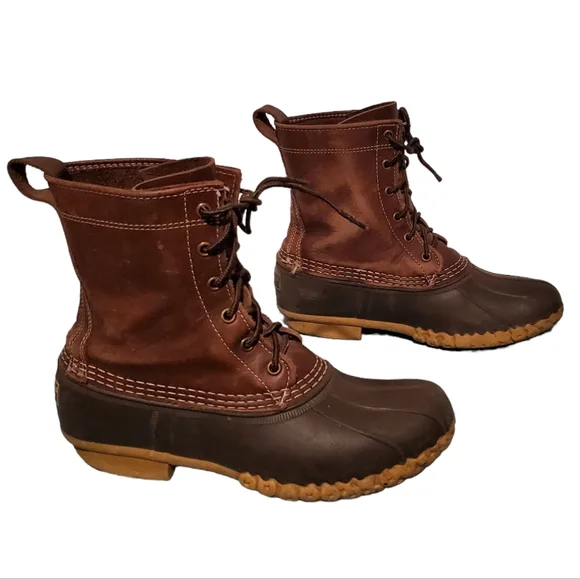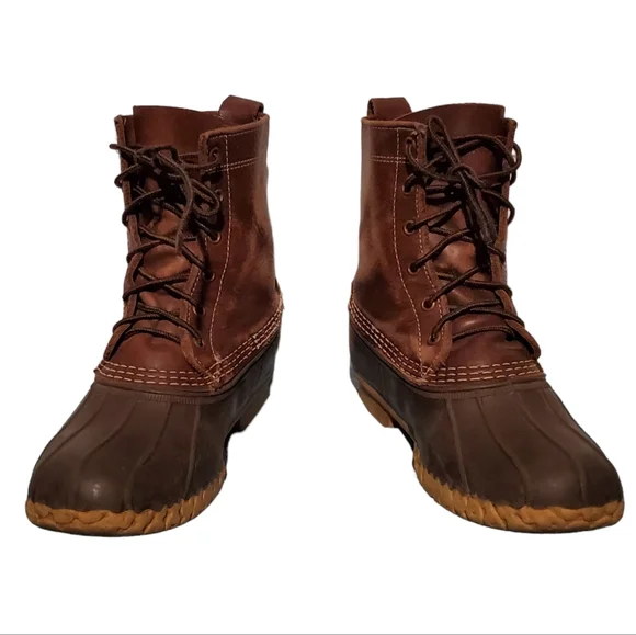 Vintage 1980´s Bean Boots By L.L. Bean Lace-Up Leather Duck Boots Men´s Size 6 These boots are in good pre-owned condition with some wear present including scuffs and discoloration as shown in the photos. The only real wear to speak of is on the heels of the soles.