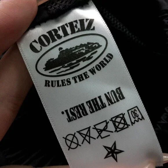 Brazil cortez joggersThese black joggers feature the bold Brazilian crest on the left legThe Corteiz signature branding is finished in gold on the right leg.Loose fit, elasticated...