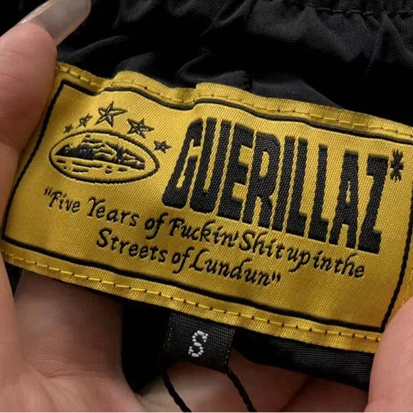 Brazil cortez joggersThese black joggers feature the bold Brazilian crest on the left legThe Corteiz signature branding is finished in gold on the right leg.Loose fit, elasticated cuffs and zip pocketsSize: S, M, L, XLAll sizes listed are availableSize waistline (cm) hip (em) pant length (cm)S: 70 96 95M: 74 100 97L: 78 104 99XL: 82 108 101