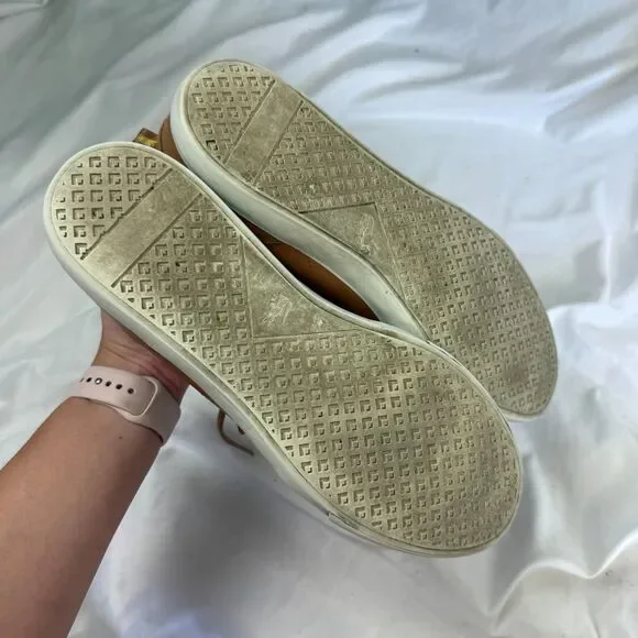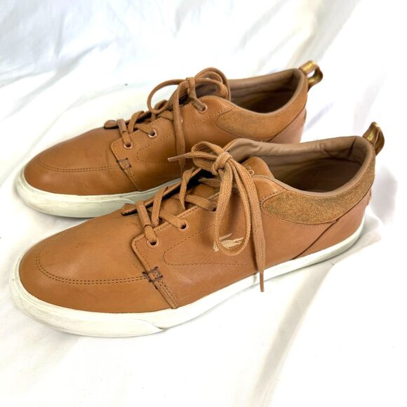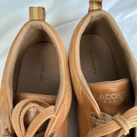 Lacoste Bayliss Tan Cognac Lace-Up Low Top Sneaker Leather Shoes Mens Size 10These are in good used condition. Do have some light dirtiness to the soles and white part along...