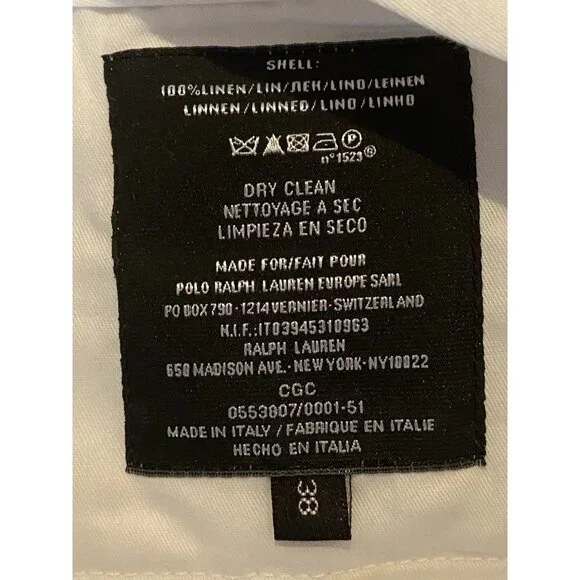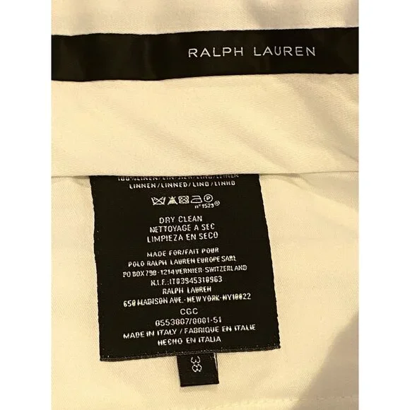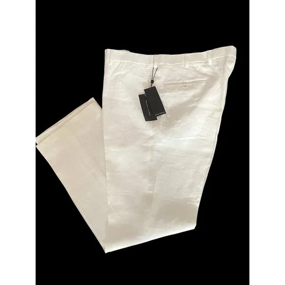 This is a pair of Ralph Lauren Black Label dress pants for men in a size 38. Made in Italy, these pants feature a flat front style and are crafted from 100% linen, making them ideal for a sophisticated and polished look. The pants come in a classic white color and have an unfinished inseam, allowing for customization to the perfect length. Perfect for formal occasions or smart-casual events, these high-quality pants offer a touch of luxury to any outfit.New with tags. MSRP: $325.00Ships from a smoke free, pet free home.Thanks for viewing!! Please view my other listings.