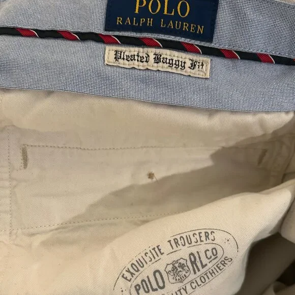 EUC Polo Ralph Lauren double pleated baggy chino with coin pocketAuthentic, Excellent Used Condition, no rips, no holes, no stains, smoke freeRecently laundered clean, beautiful light stone colorCuffed hem, slightly cropped 30" inseamwaist 33